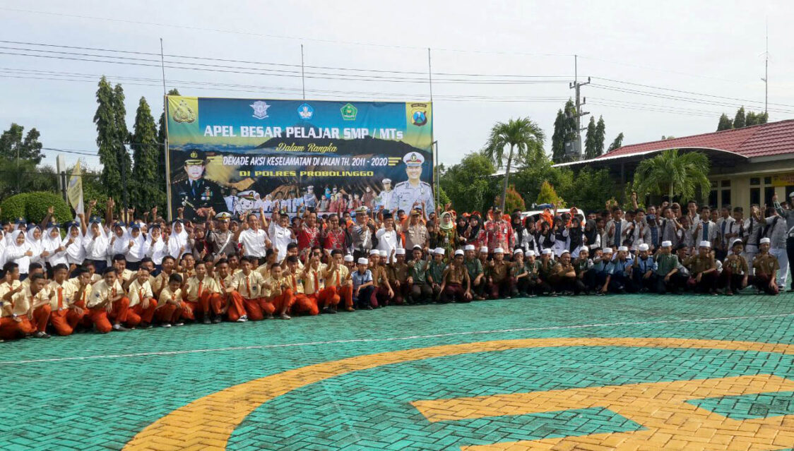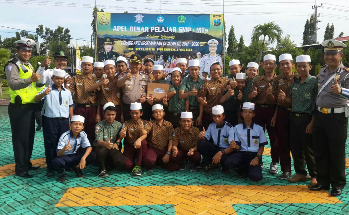 Genggong- Dalam rangka menekan angka kecelakaan lalu lintas di wilayah Kabupaten Probolinggo, Satlantas Polres Probolinggo mengadakan Apel Besar Pelajar SMP/MTs. Se Kabupaten Probolinggo pada Rabu pagi (18/1). Kegiatan yang dilaksanakan di halaman Polres Probolinggo tersebut diikuti sekitar 15 SMP/MTs. Se Kabupaten Probolinggo, tak terkecuali MTs. Zainul Hasan (MTs. Zaha) Genggong.