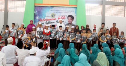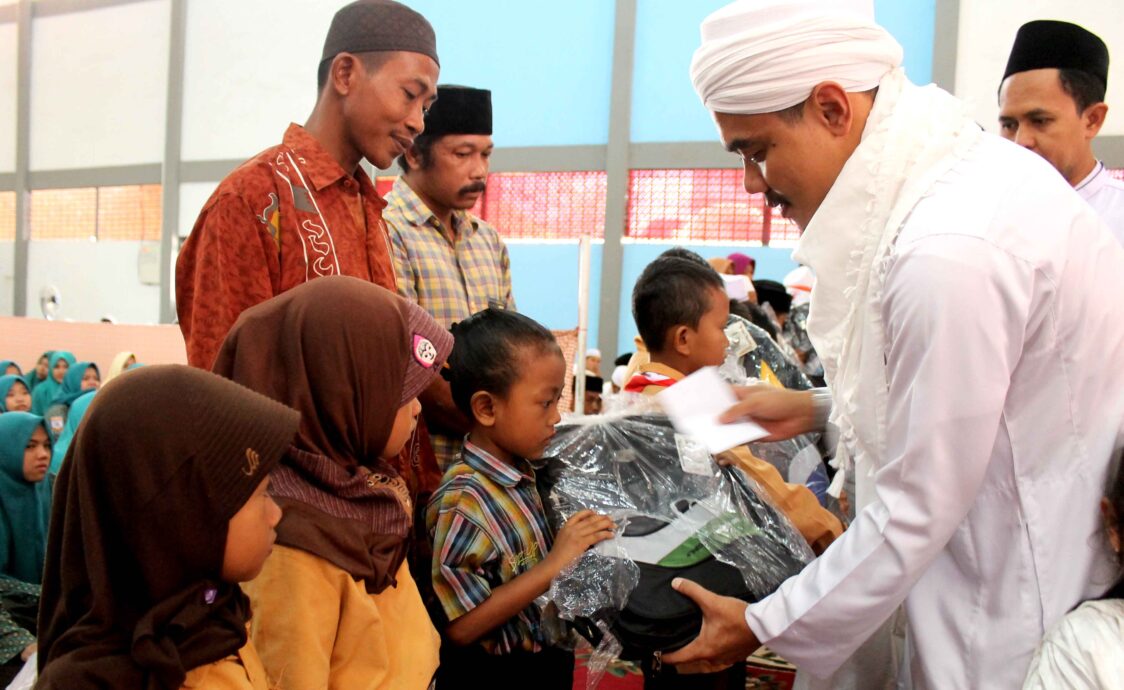 Genggong- Acara MTs. Zaha Bersholawat dengan tajuk Kebersamaan Hakiki dalam Lantunan Surgawi yang diadakan oleh Madrasah Tsanawiyah Zainul Hasan Genggong kemarin Sabtu (1/5) tak hanya diisi dengan acara sholawatan. Dalam kesempatan tasyakkuran kelas IX dan menyambut datangnya bulan suci Ramadhan itu, MTs. Zaha kembali mengadakan bakti sosial. Hal itu diwujudkan dalam bentuk pemberian santunan kepada para anak yatim dan fuqara. Santunan yang merupakan hasil shodaqoh santri dan asatidz disalurkan kepada 30 anak yatim dan fuqara’ di GOR Damanhuri Romly, tempat digelarnya MTs. Zaha Bersholawat.