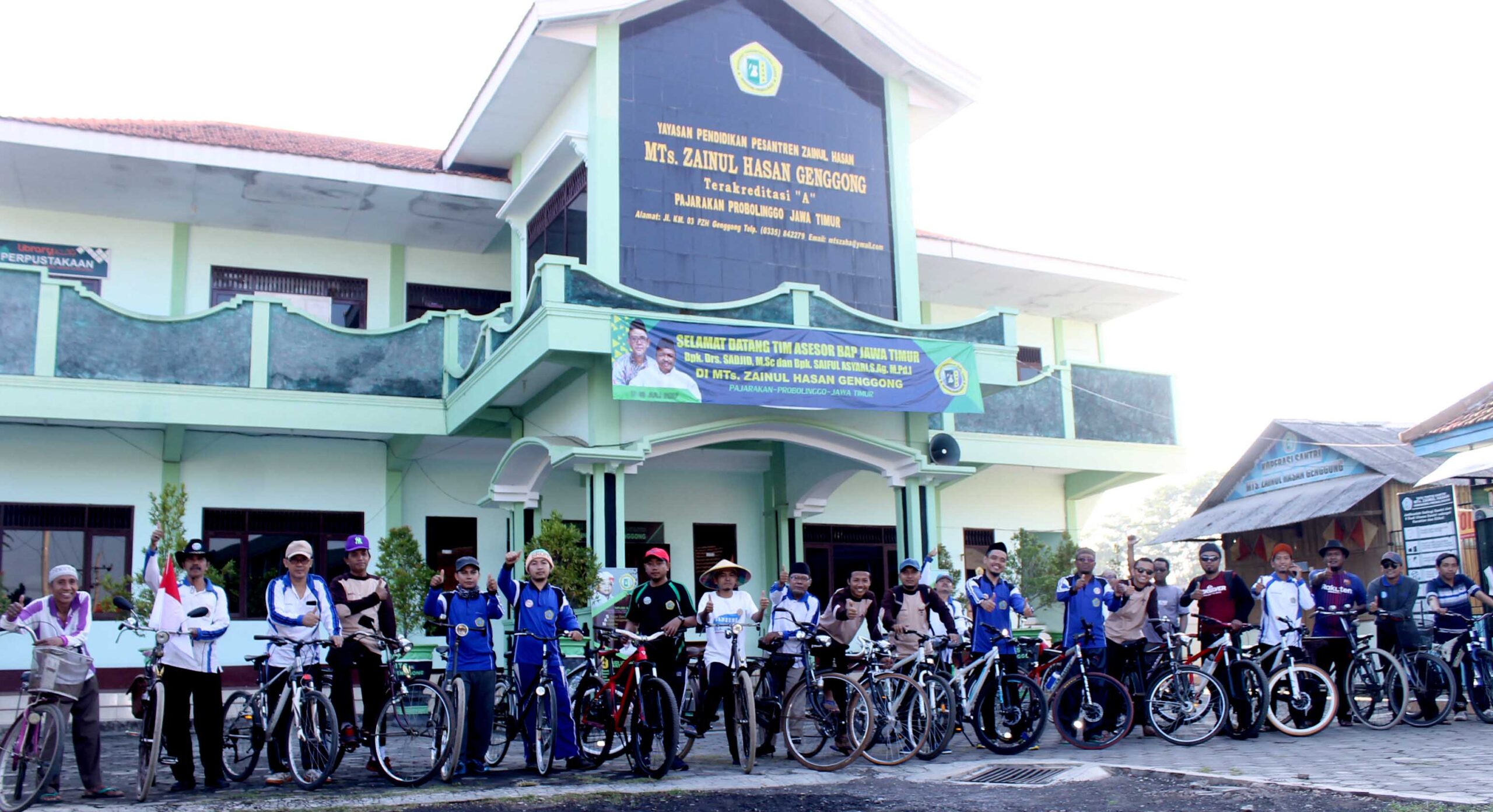 Genggong- Bersepeda kini menjadi salah satu olahraga yang digemari masyarakat. Saat ini bersepeda tidak hanya sekedar untuk olahraga saja tapi juga menjadi sarana bersosialisasi dan menjalin silaturrahmi. Seperti yang dilakukan para asatidz Madrasah Tsanawiyah Zainul Hasan (MTs. Zaha) Genggong hari Ahad (30/7). Mereka bersepeda bersama yang dipimpin langsung oleh kepala madrasah, Abuya KH. Moh. Hasan Naufal, S.H.I.