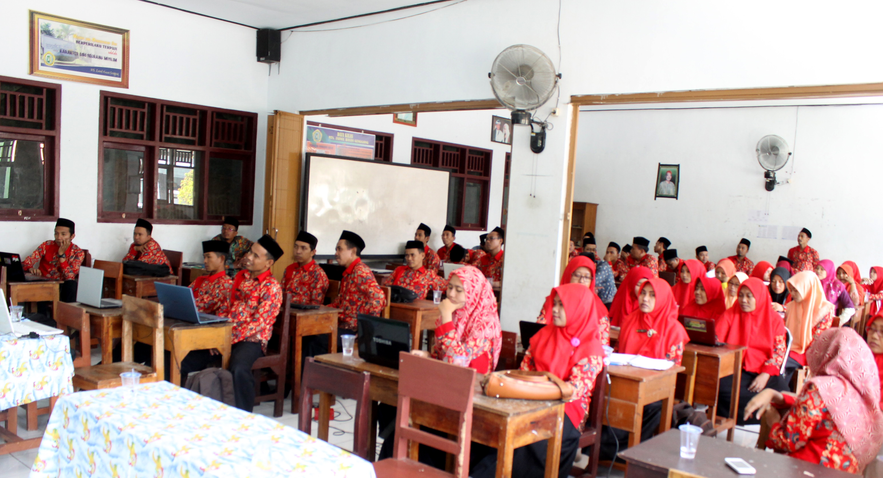 GENGGONG- Madrasah Tsanawiyah Zainul Hasan (MTs. Zaha) Genggong kedatangan tamu tim dari PT. POMI Paiton kemarin Sabtu (3/3/2018). Turut hadir juga bersama rombongan beberapa guru dari MTs Negeri 1 Probolinggo. Mereka datang langsung dalam rangka sosialisasi sekolah adiwiyata. Tim yang bergerak dalam pelestarian lingkungan tersebut diwakili oleh ibu Siti Munawwaroh. Ia juga sebagai pembicara pada sosialisasi adiwiyata tersebut yang disambut dengan antusias oleh para asatidz/asatidah MTs. Zaha usai mengikuti rapat rutin pada hari itu.