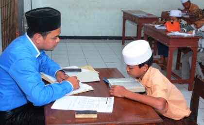 Genggong- Calon santri baru Madrasah Tsanawiyah Zainul Hasan 1 (MTs. Zaha 1) Genggong kecamatan Pajarakan kabupaten Probolinggo mengikuti tes penerimaan peserta didik baru kemarin, Ahad (6/5/2018). Tes yang berlangsung di gedung MTs. Zaha putra ini merupakan tes seleksi untuk pendaftar gelombang 1.