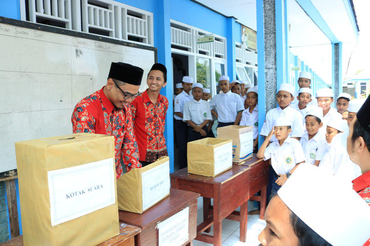 “Monggo para asatid yang masih belum mencoblos agar segera menggunakan haknya. Karena sebentar lagi akan dilakukan penghitungan suara.” Ujar Ust. Ali Wapa selaku Pembina OSIS Putra MTs. Zaha melalui pengeras suara.