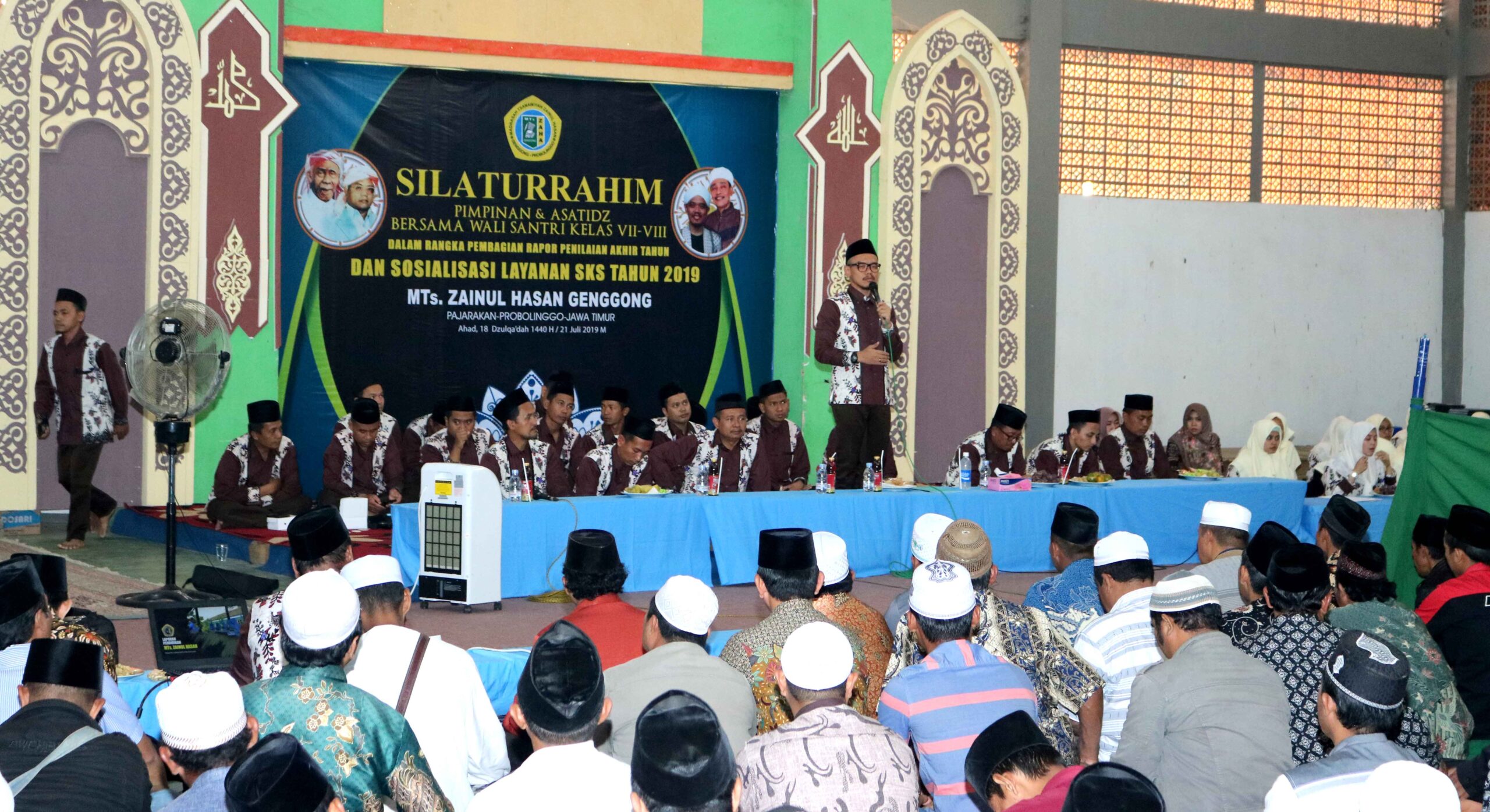 Genggong- Madrasah Tsanawiyah Zainul Hasan 1 (MTs. Zaha 1) Genggong kembali mengadakan rapat bersama wali santri kelas VII dan VIII pada Ahad (21/7/2019). Kegiatan ini bertujuan untuk menyampaikan laporan hasil belajar santri pada semester genap. Selain itu, acara yang digelar di GOR Damanhuri Romli ini juga menjadi kesempatan bagi madrasah untuk menyampaikan informasi tentang program terbaru serta layanan SKS yang akan dijalankan tahun depan.
