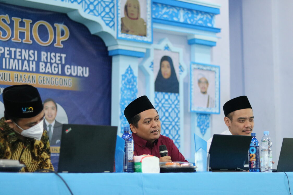 Genggong- Dalam rangka meningkatkan mutu dan kompetensi guru di bidang riset, Madrasah Tsanawiyah Zainul Hasan (MTs. Zaha) Genggong menggelar workshop Penguatan Kompetensi Riset dan Penulisan Karya Ilmiah bagi Guru. Kegiatan yang berlangsung pada Selasa (22/3) di Aula Tabaarakallah MTs. Zaha ini diikut oleh seluruh tenaga pendidik dan tenaga kependidikan MTs. Zaha dengan menghadirkan dua narasumber yang kompeten dari Universitas Negeri Malang, yaitu Prof. Dr. Ahmad Taufiq, S.Pd., M.Si. dan Hendra Susanto, S.Pd., M.Kes., Ph.D.